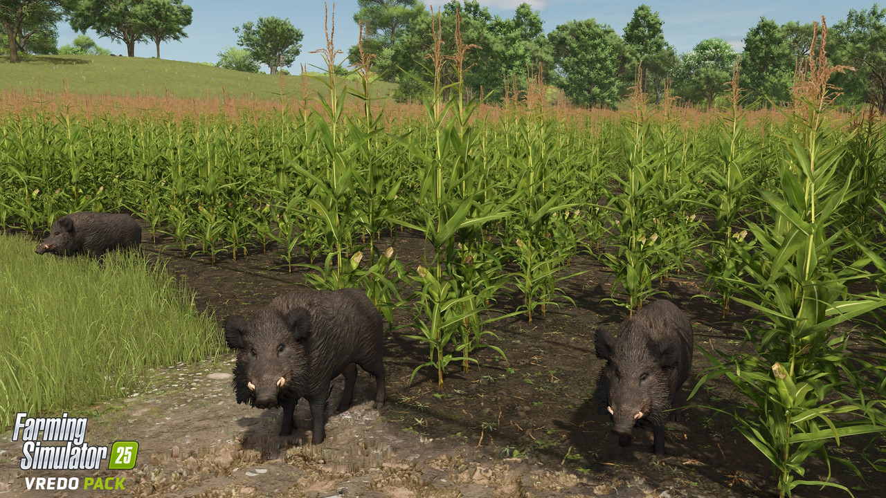 In addition to the twelve machines (including the Vredo Profi series and the Evers Agro Toric 48-672), the Vredo Pack introduces a new type of wildlife: wild boars now roam your maps and can damage cornfields and other crops. A forester’s assignment will then send you out to set up distractions and limit the damage. If you’d rather avoid animal-related stress, you can simply disable the bristly vandals in the game settings.