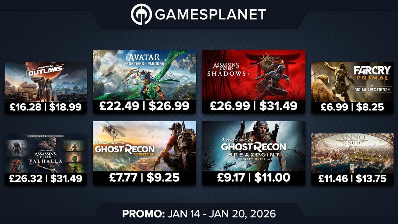 Explore a galaxy far far away, become an assassin and race fast cars with our brand new Ubisoft Publisher Week. Expect great offers on Star Wars Outlaws at a most impressive 73% off, visit Japan with Assassin's Creed Shadows or build with Anno 1800 - which is currently 77% off! Check out the promo page to see the full range of titles available on offer until January 20th.