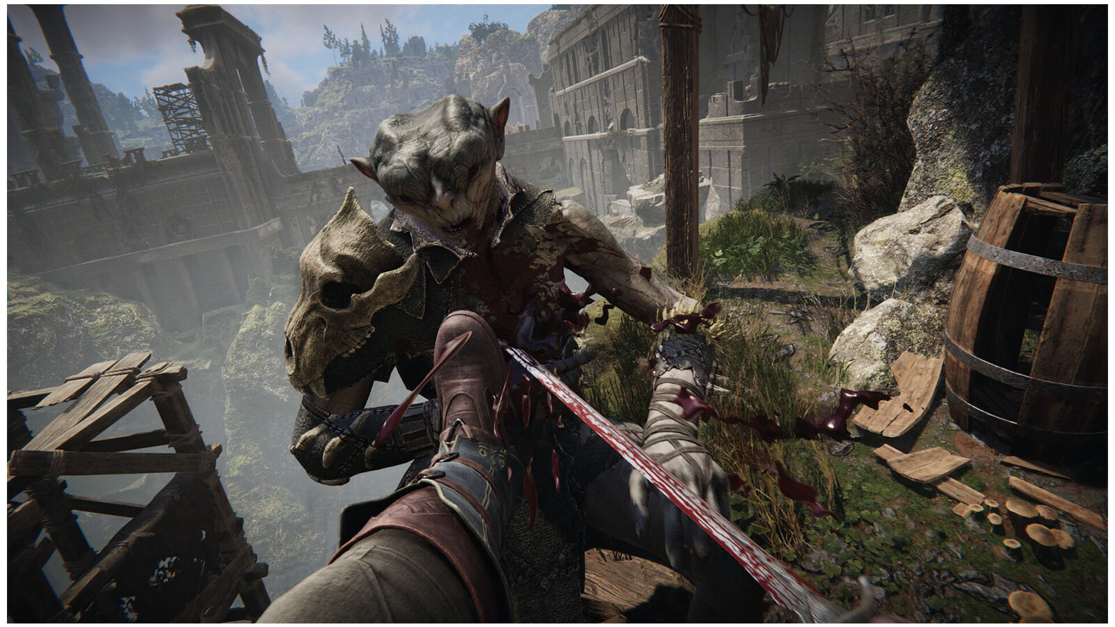 Build your combo and execute it against enemies. Drop a tree on their head, kick them off a cliff, set them on fire. In Alkahest, fast-paced close combat within a richly interactive environment takes center stage.