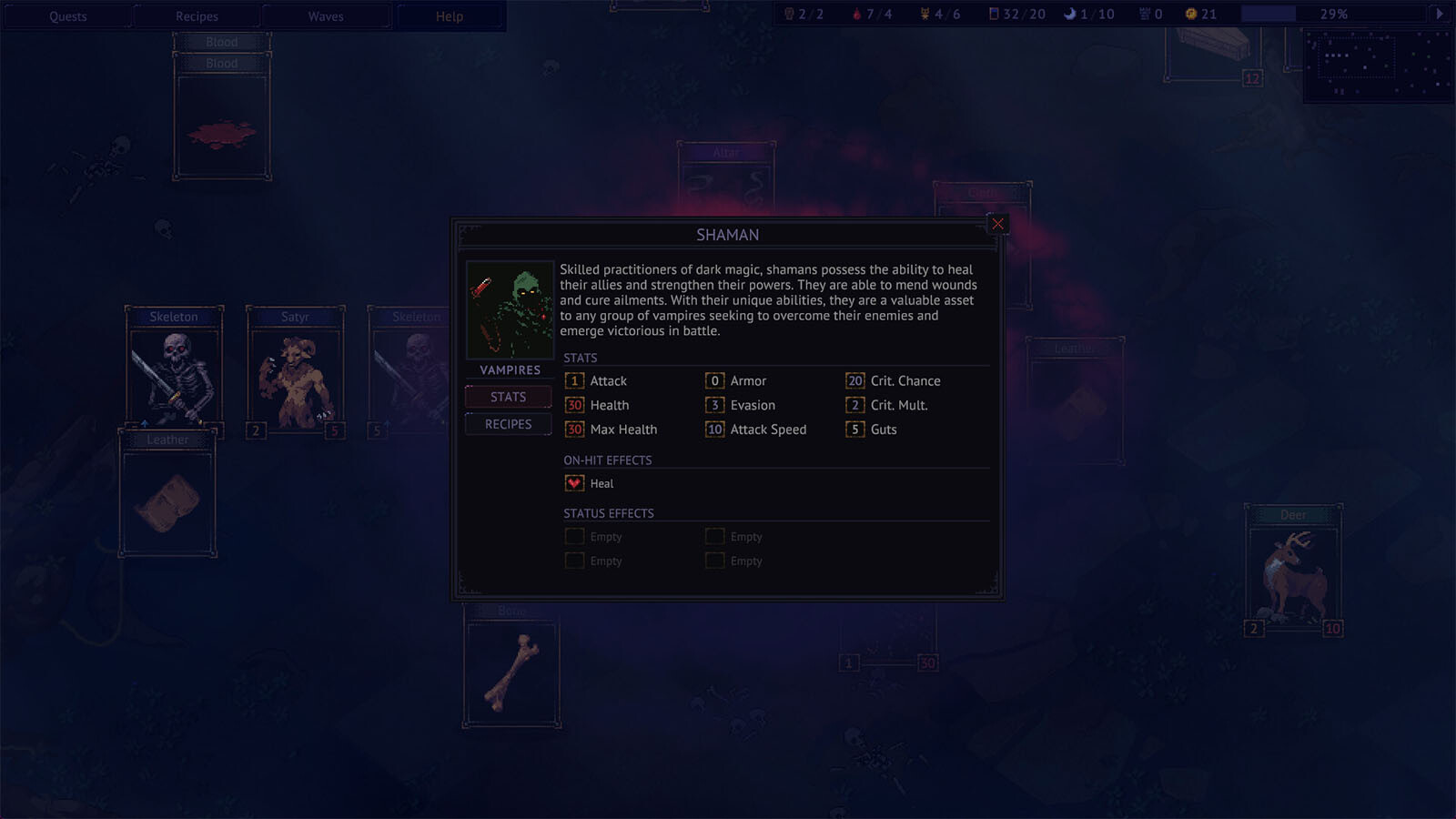 Discover powerful classes, each with its own unique playstyle. Tame monsters, brew potions and craft magic weapons to gain the upper hand in combat. Tailor your strategy around your undead army. Unique synergies arise depending on whether your minions are slow, sturdy juggernauts or swift, delicate fighters.