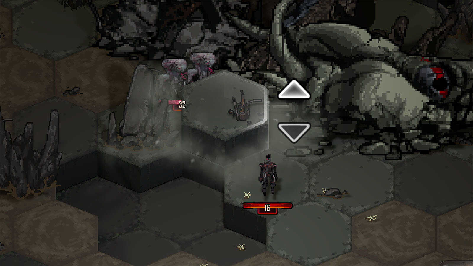 Navigate and transform spaces, modify, destroy, or replace grid elements to exploit terrain height and effects, gaining tactical advantages by strategically positioning your squad.