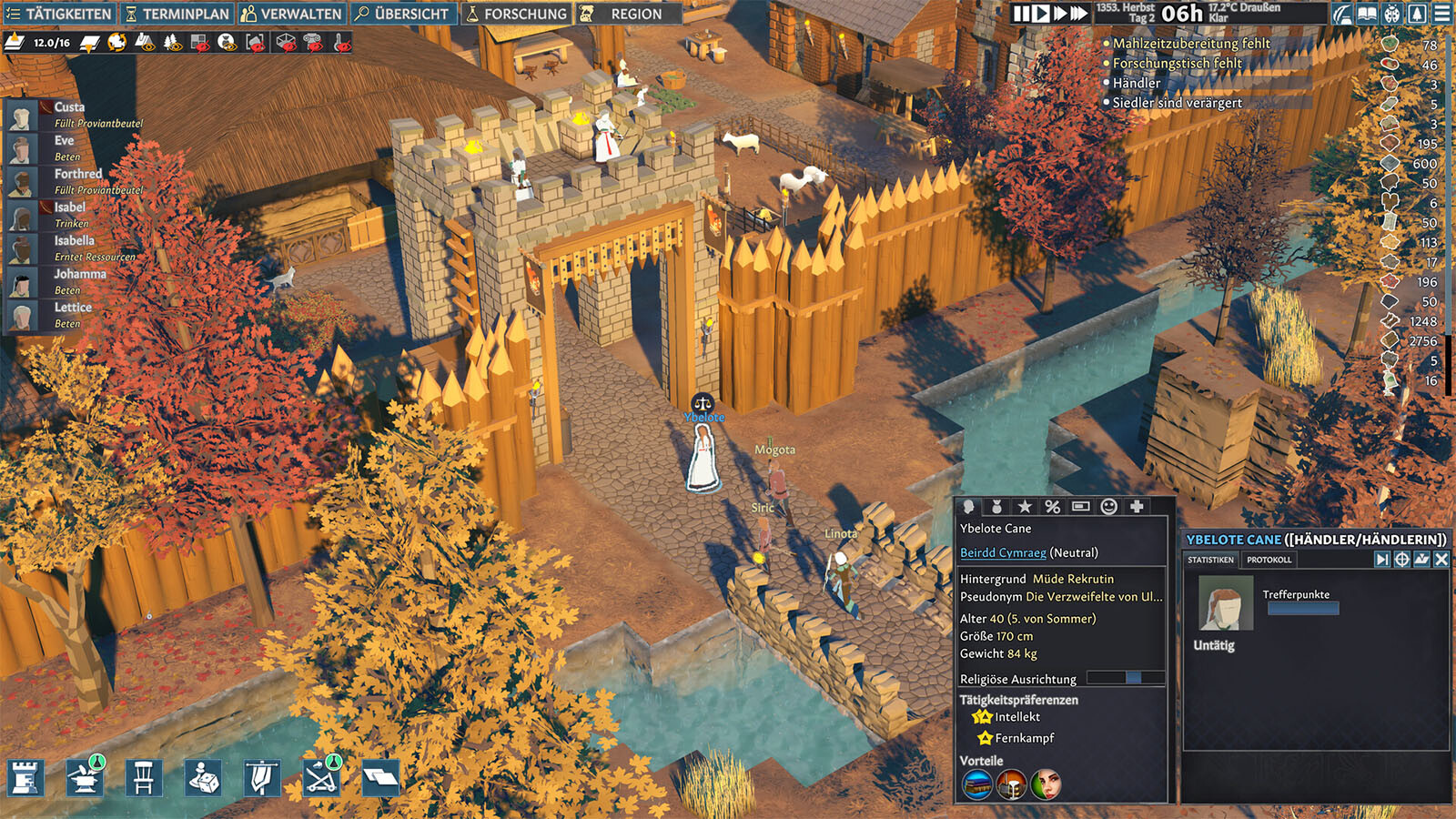 Each settler is a unique character. Consider Grimbold, for example. As a Swineherd, his Animal Handling is second to none. But his personality is Savage, so he’d make a strong Brawler. He likes nice clothes, his religion is dear to him — and he’s hungry. Satisfy Grimbold’s needs, use his talents, and he’ll be a happy settler — key to a happy settlement.