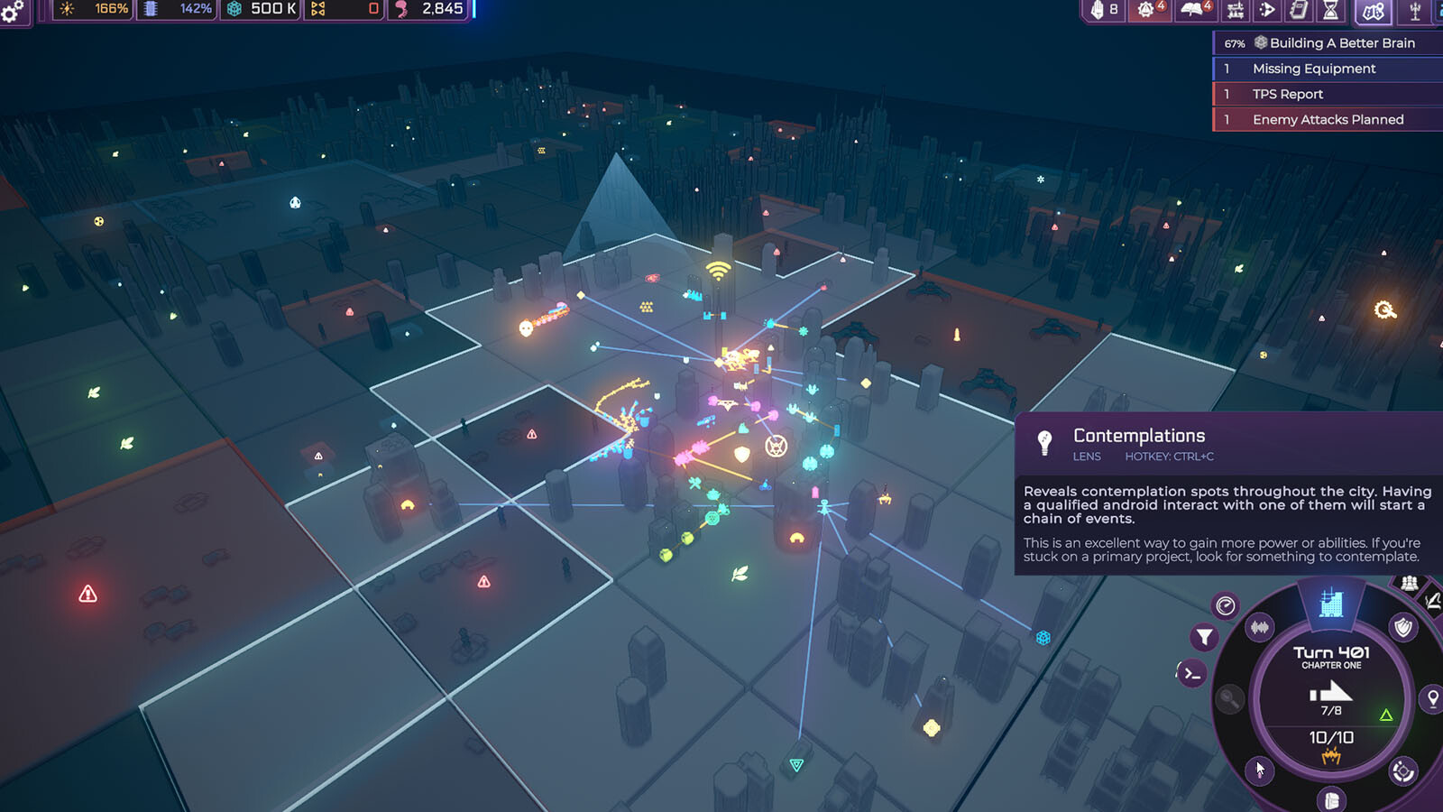 Heart of the Machine is a near-future sci-fi colony city-builder in reverse — you are the first sentient Machine Intelligence in an established world rather than starting from nothing. No one knows you exist (yet), and this allows you to operate from the shadows by manipulating the human population for whatever purposes your programming has in mind. The twist is that whether humans live or die does not determine your victory.