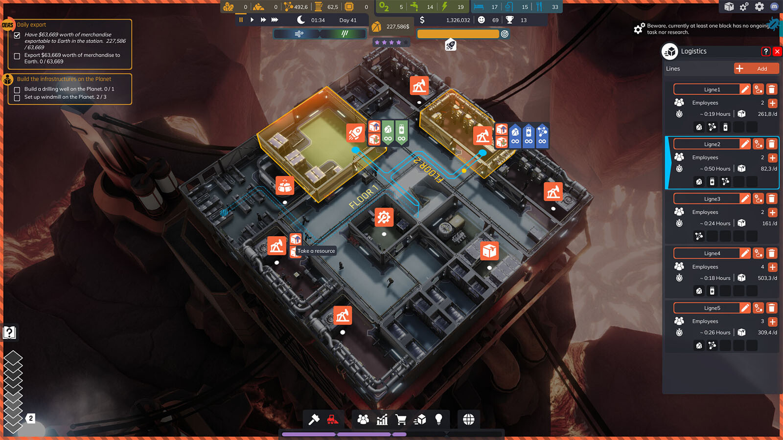 Hire the most skilled workers to develop your station. Assign the right roles and work schedules to achieve optimal efficiency. But beware, don’t overlook their health and well-being, or their performance may decline and they might quit.