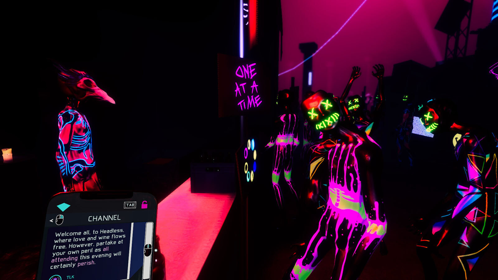 Following a promise of the ultimate expression of freedom, you find yourself at the Headless Rave Festival. However, that freedom comes at a cost as the organisers announce that the price of admission is the lives of all attendees.