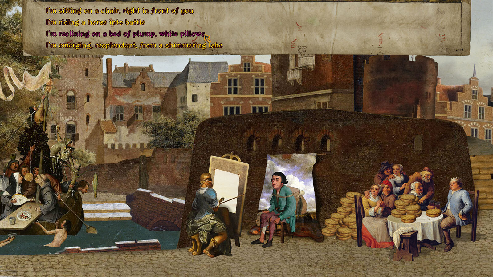 Four Last Things is a point-and-click adventure game made from Renaissance-era paintings and public domain recordings of classical music. It is about sin, and the Four Last Things – Death, Judgement, Heaven and Hell – and strives to be intelligent and ridiculous in equal measures.