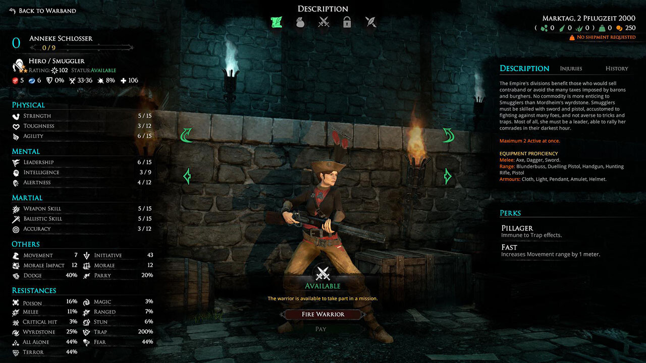 This Hired Sword is a new Hero-type unit that can be recruited to further customize your roster. The Poison Wind Globadier is available for the Skaven and the Cult of the Possessed Warbands.