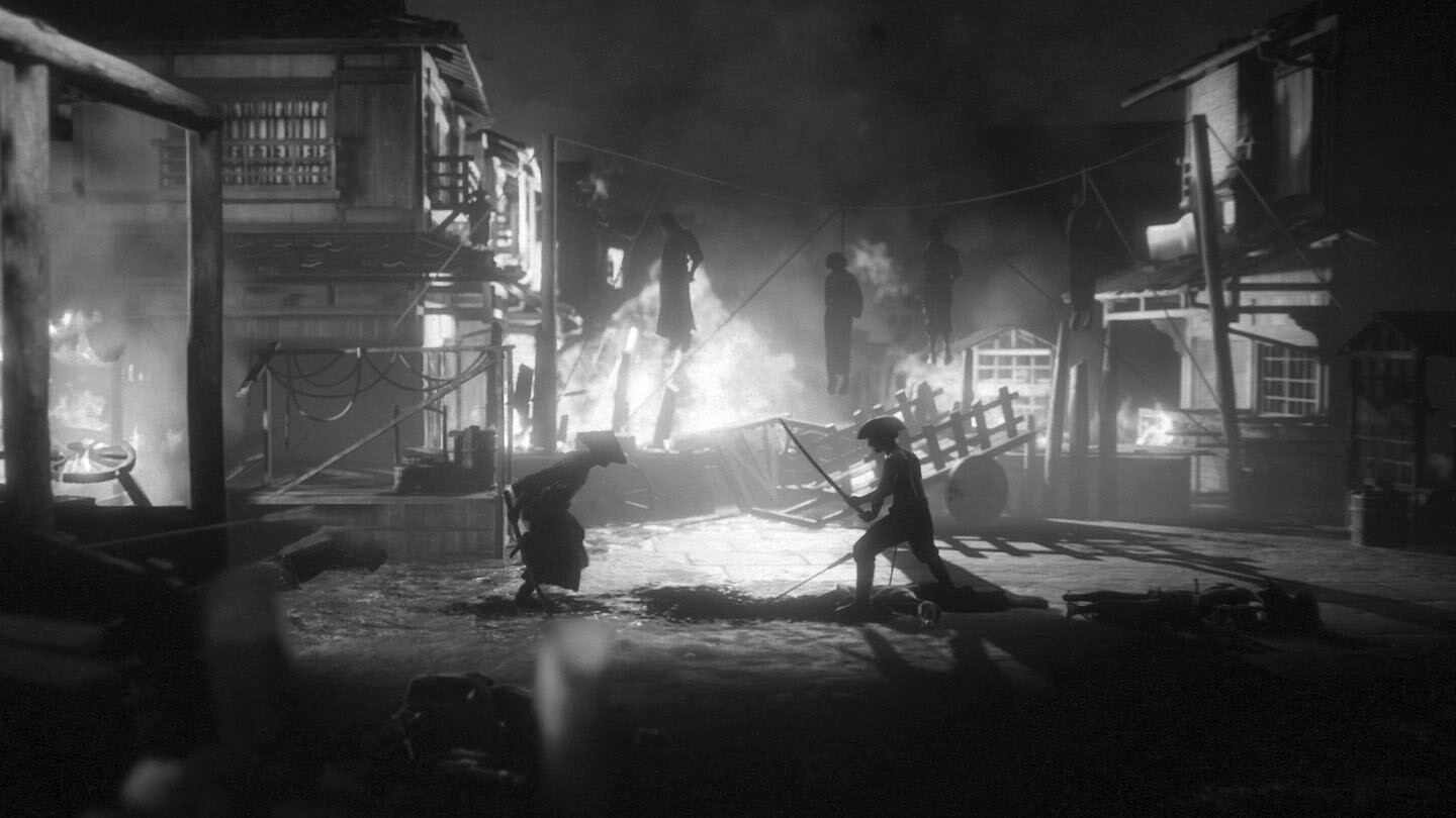 Breathtaking camera angles and striking visuals in the spirit of classic samurai film create a true cinematic experience in Trek to Yomi.