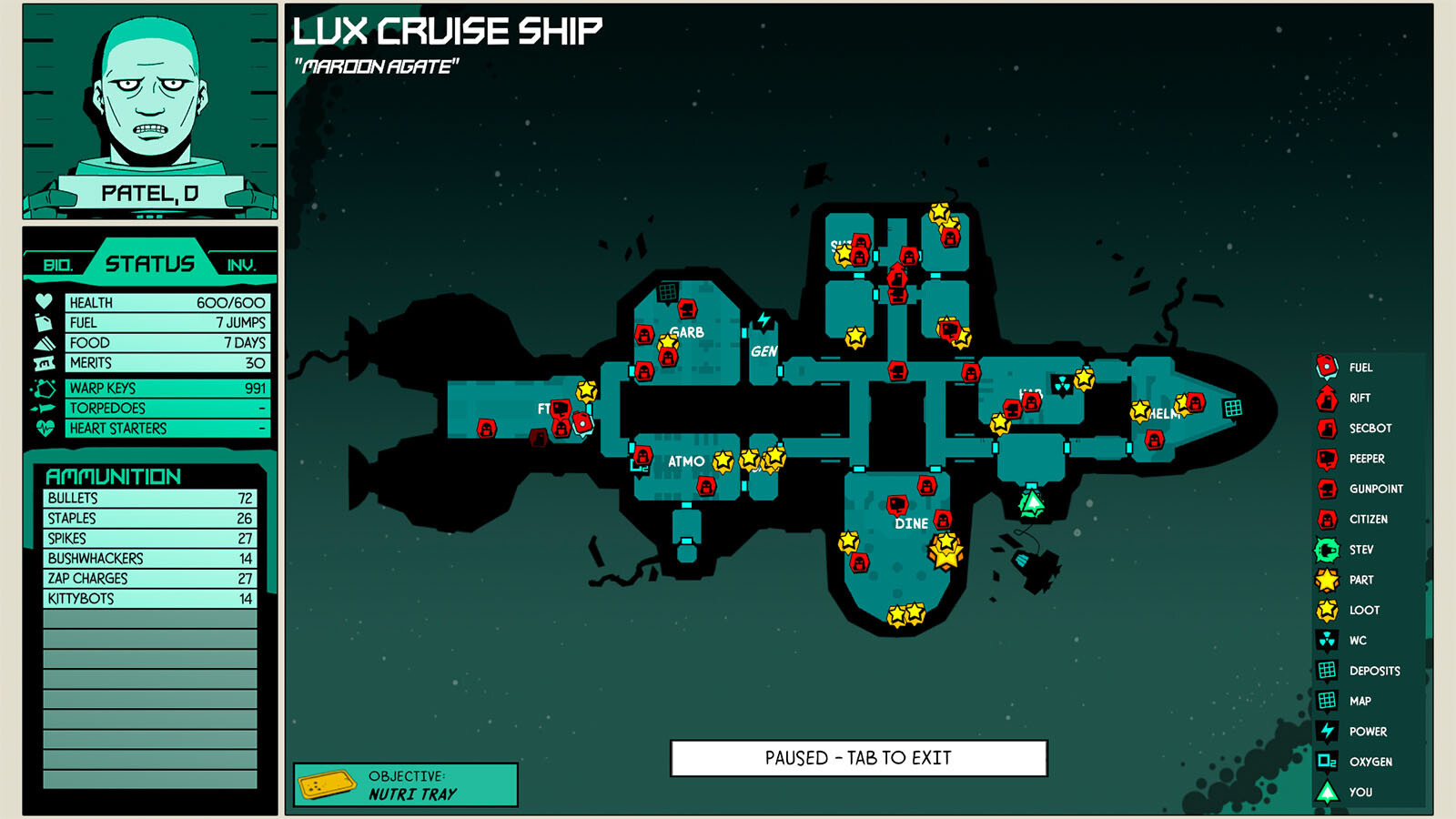 On board derelict spaceships you’ll plan your mission, taking note of the ship layout, what hazards and enemies you might encounter and what terminals and other ship systems you can use to your advantage..